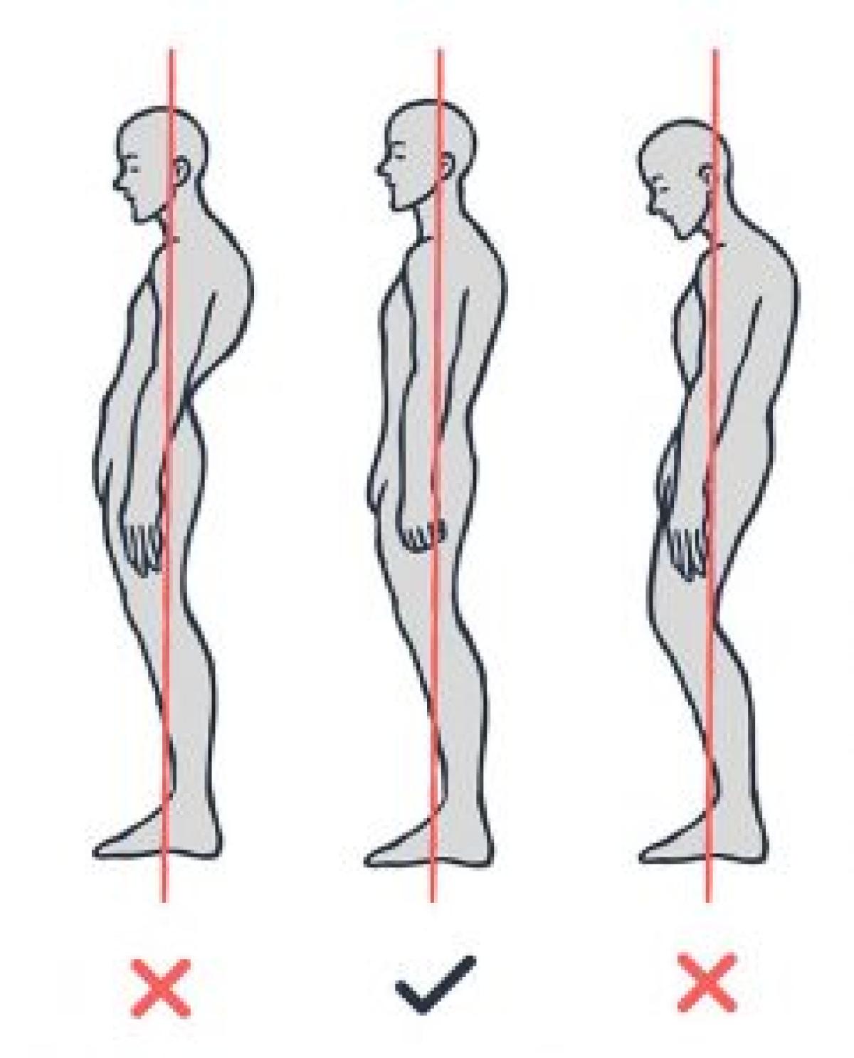 理想的な姿勢とは、外くるぶしのやや前方(約2センチ)~耳までをつないだ線が、地面に対して垂直であることです。